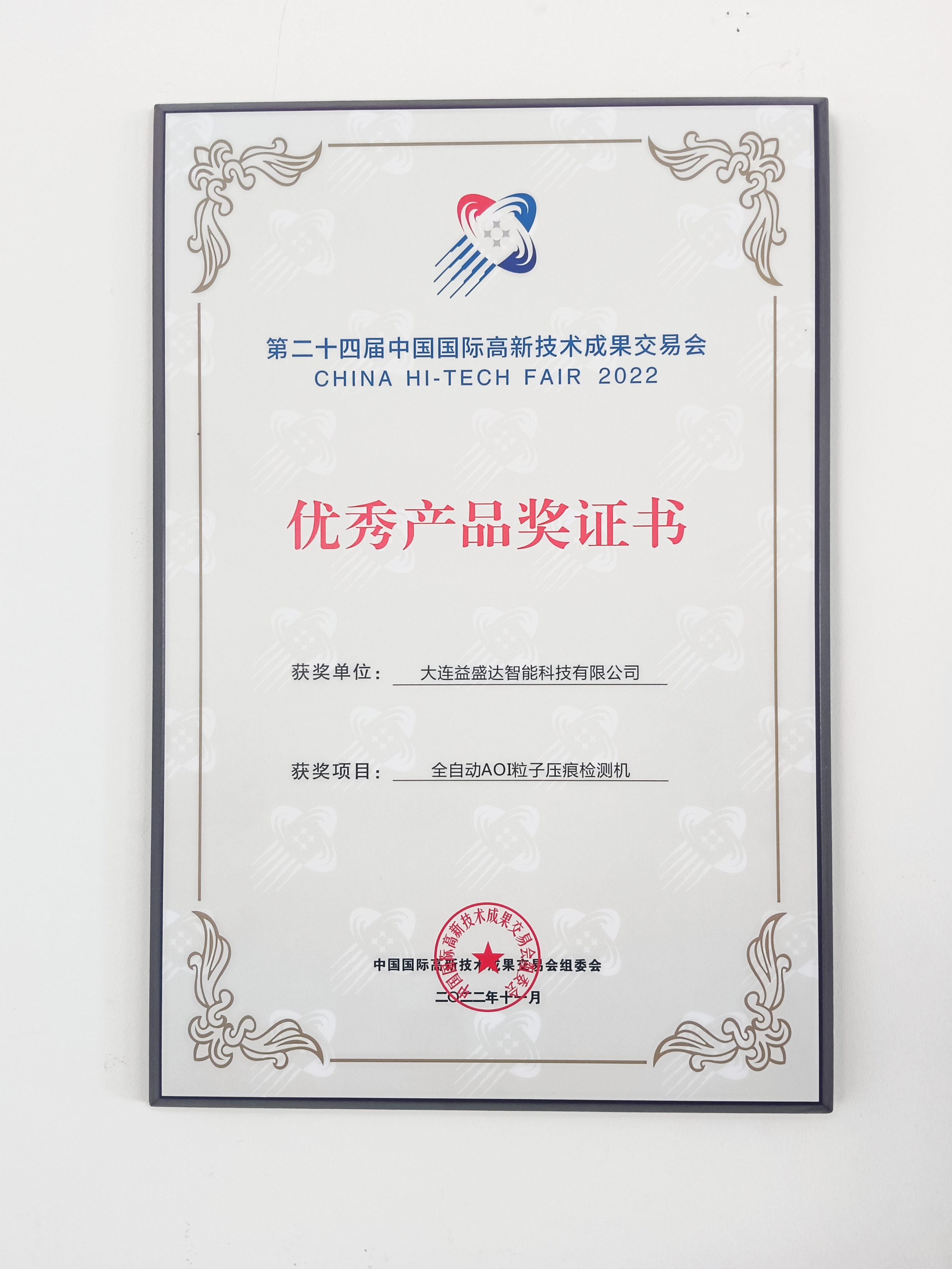 在剛剛落下帷幕的“第二十四屆中國(guó)國(guó)際高新技術(shù)成果交易會(huì)”(以下簡(jiǎn)稱國(guó)際高交會(huì)),大連益盛達(dá)智能科技有限公司(以下簡(jiǎn)稱“益盛達(dá)公司”)的全自動(dòng)AOI粒子壓痕檢測(cè)機(jī),憑借先進(jìn)的檢測(cè)功能,榮獲“優(yōu) 秀 產(chǎn) 品 獎(jiǎng)”。